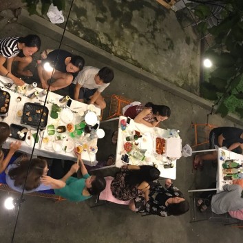 ● 야외 테이블이 마련되어 있어 간단하게 고기를 구워드실 수 있습니다. - 구이용팬 및 버너, 소도구는 무료로 빌려드려요. (무상으로 제공해드리는 서비스 이므로 꼭 세척 후 반납해주세요.) - 뒷정리 및 쓰레기는 분리수거해주세요. - 야외 및 홀을 이용한 술자리는 주무시는 분들을 위해 자정까지로 제한합니다. (여럿이 같이 쓰는 공간이므로 양해부탁드려요.)
